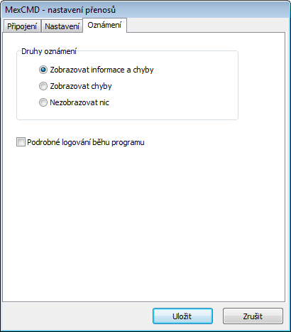 Pro zjištění příčiny konkrétní chyby otevřete log C:\Program Files (x86)\MexCMD\MexCMD.log. Log je možné zobrazit i přes položku v menu Zobrazit protokol komunikace. Řádky s chybami začínají ERR>.