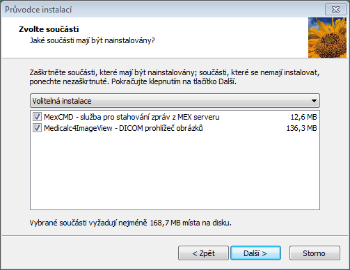 Spusťte instalátor MexCMD a postupujte dle pokynů. Na níže uvedené obrazovce zaškrtněte volbu Medicalc4ImageView.